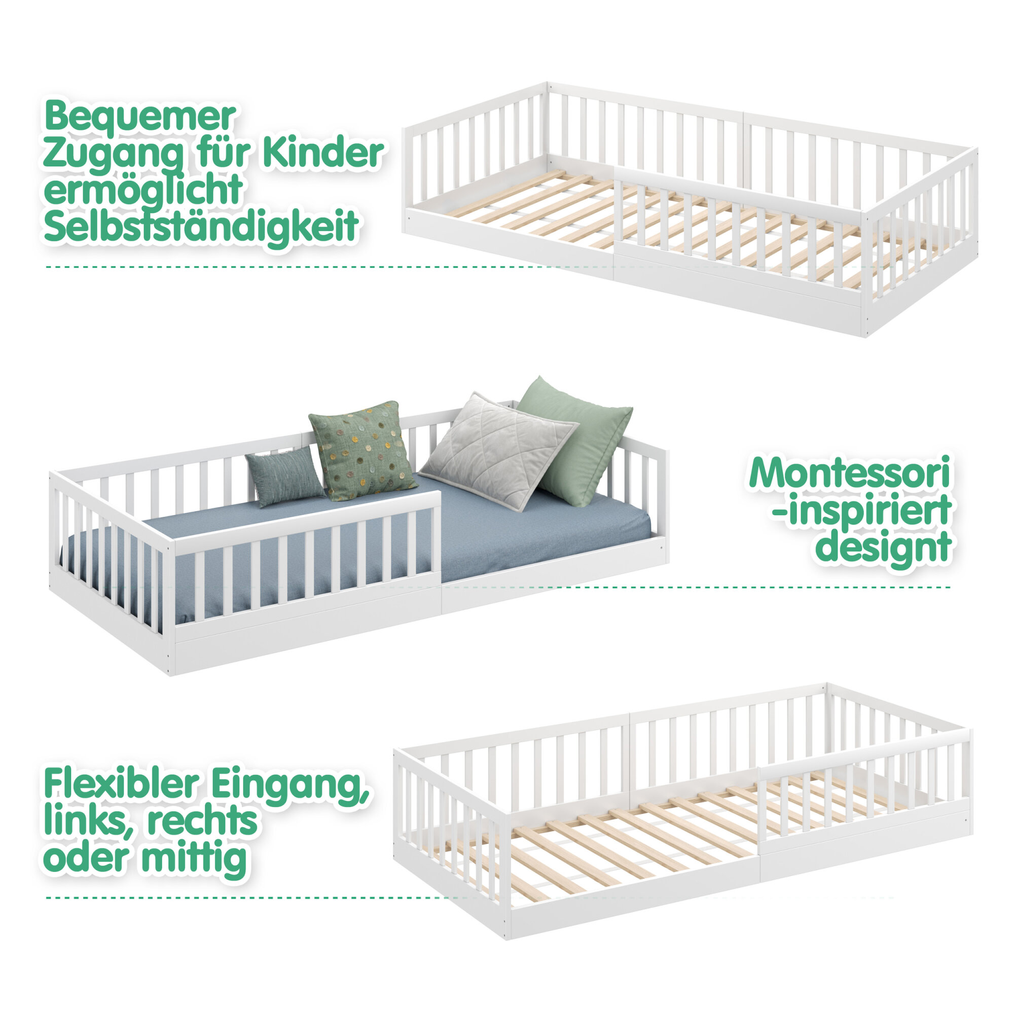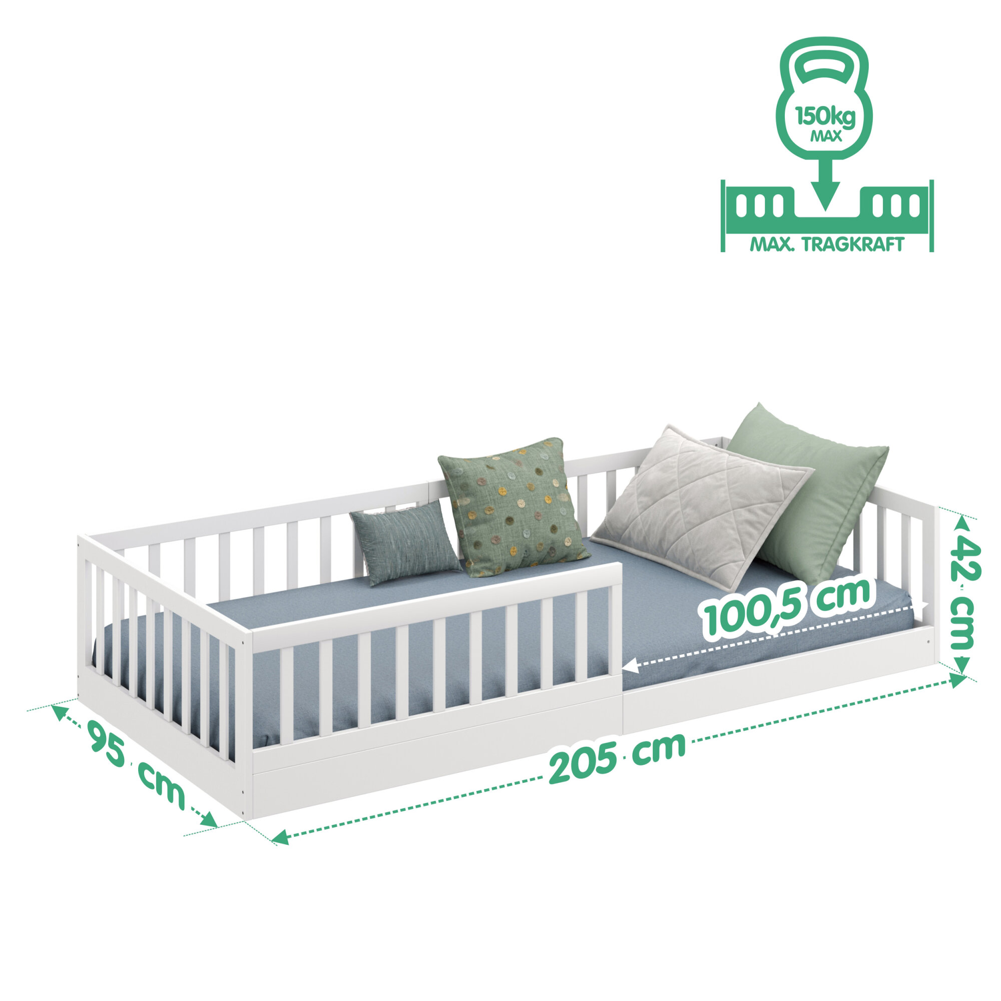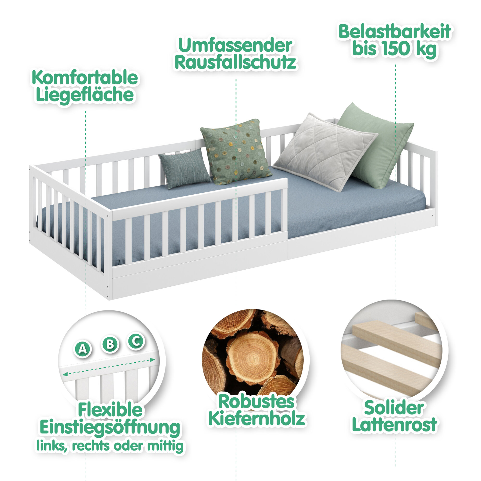 Timi Bodenbett 90x200 cm - Rausfallschutz abnehmbar
